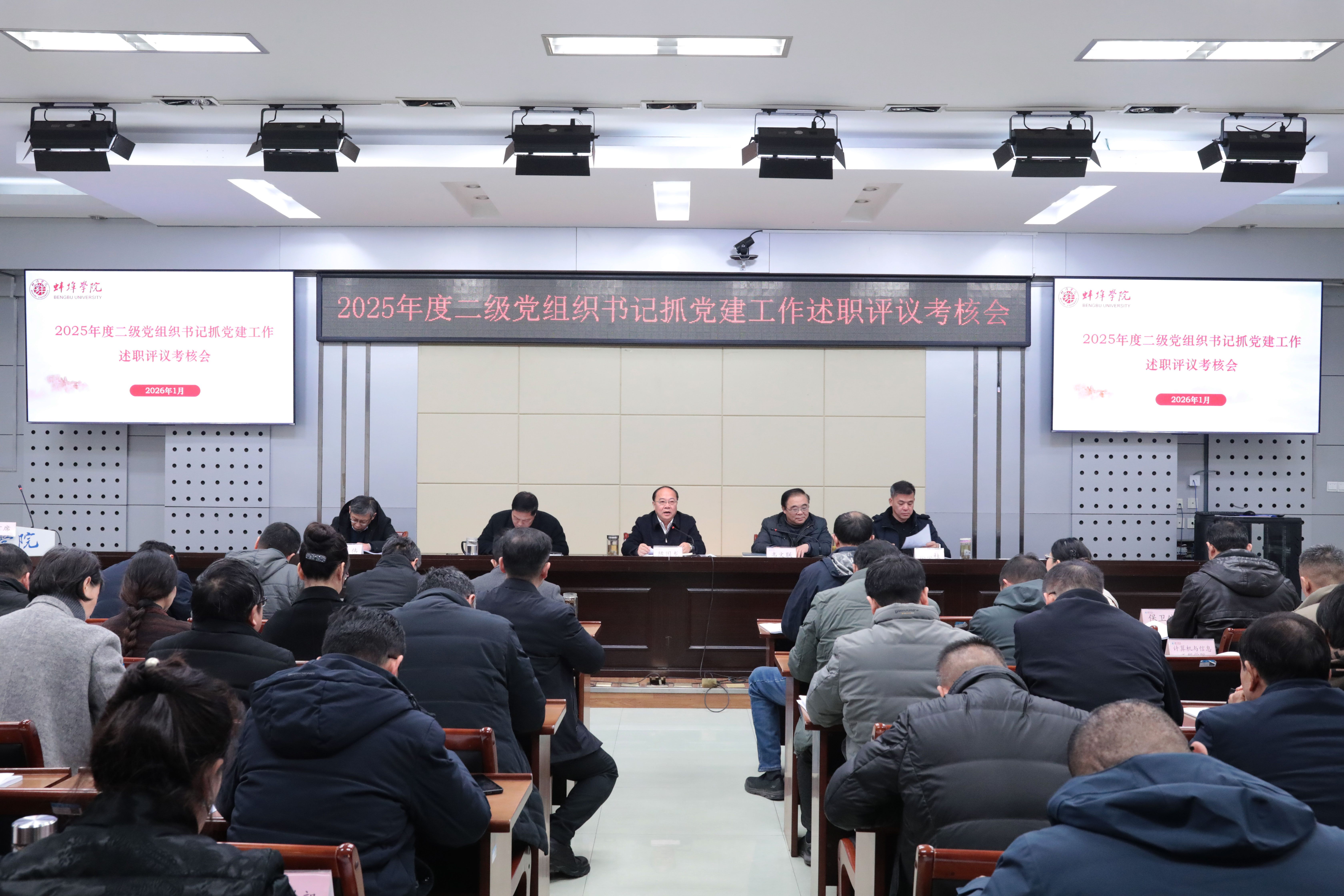 2026年1月14日上午,学校召开2025年度二级党组织书记抓党建工作述职评议考核会,党委书记陈国龙出席会议并讲话。党委班子成员、各教学院部党政负责人、相关职能部门负责人、支部书记及师生党员代表参加会议。会议由党委副书记韦文联主持。
